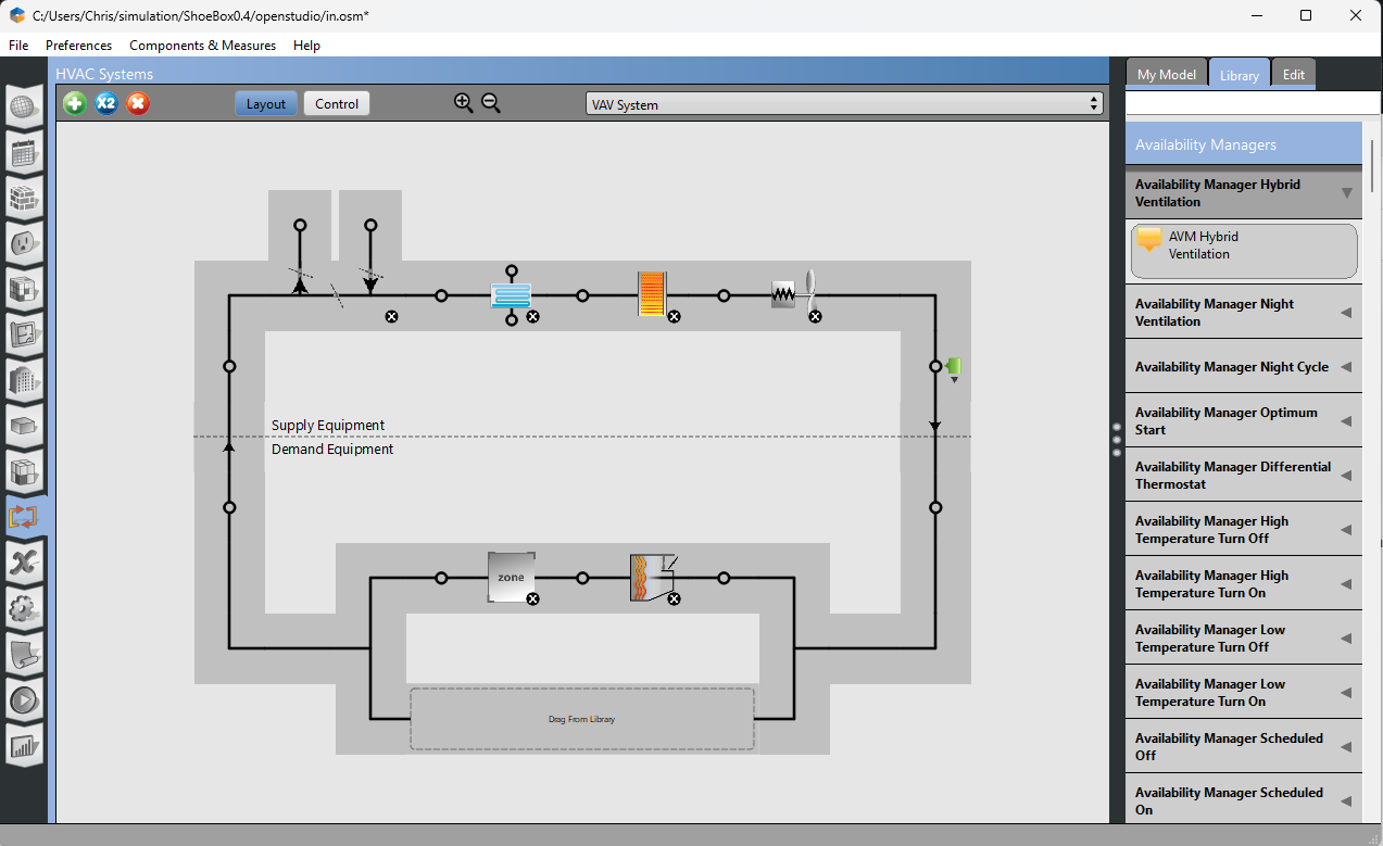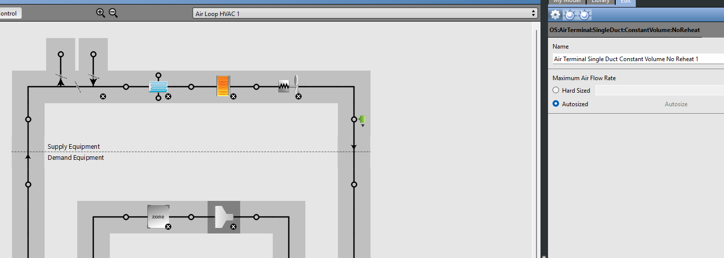 If you stick to using the template HVAC systems, you will always be able to get things to work out of the box like you see what I have here when I choose “VAV chiller with PFP boxes”: