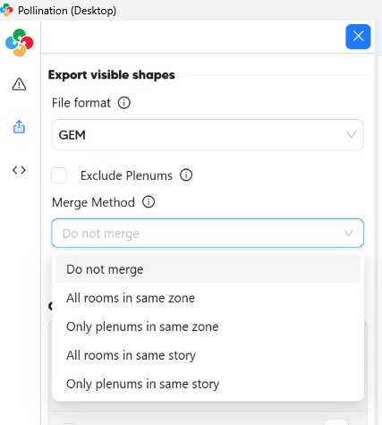 Looking at your screenshot there, it seems that you might have forgotten to solve adjacencies before you exported to GEM with the merge option. As the description of the “Merge Method” says, the routine relies on solved adjacencies to determine which groups of rooms can be merged into contiguous closed volumes.
