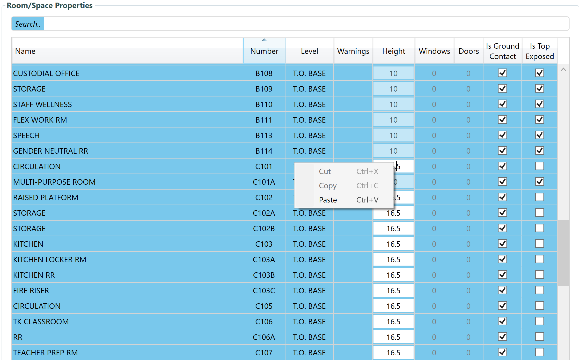 But what makes little sense to me is that to override the room height of a room, I have to right click anywhere to the left of the actual room height cell. Check this out: