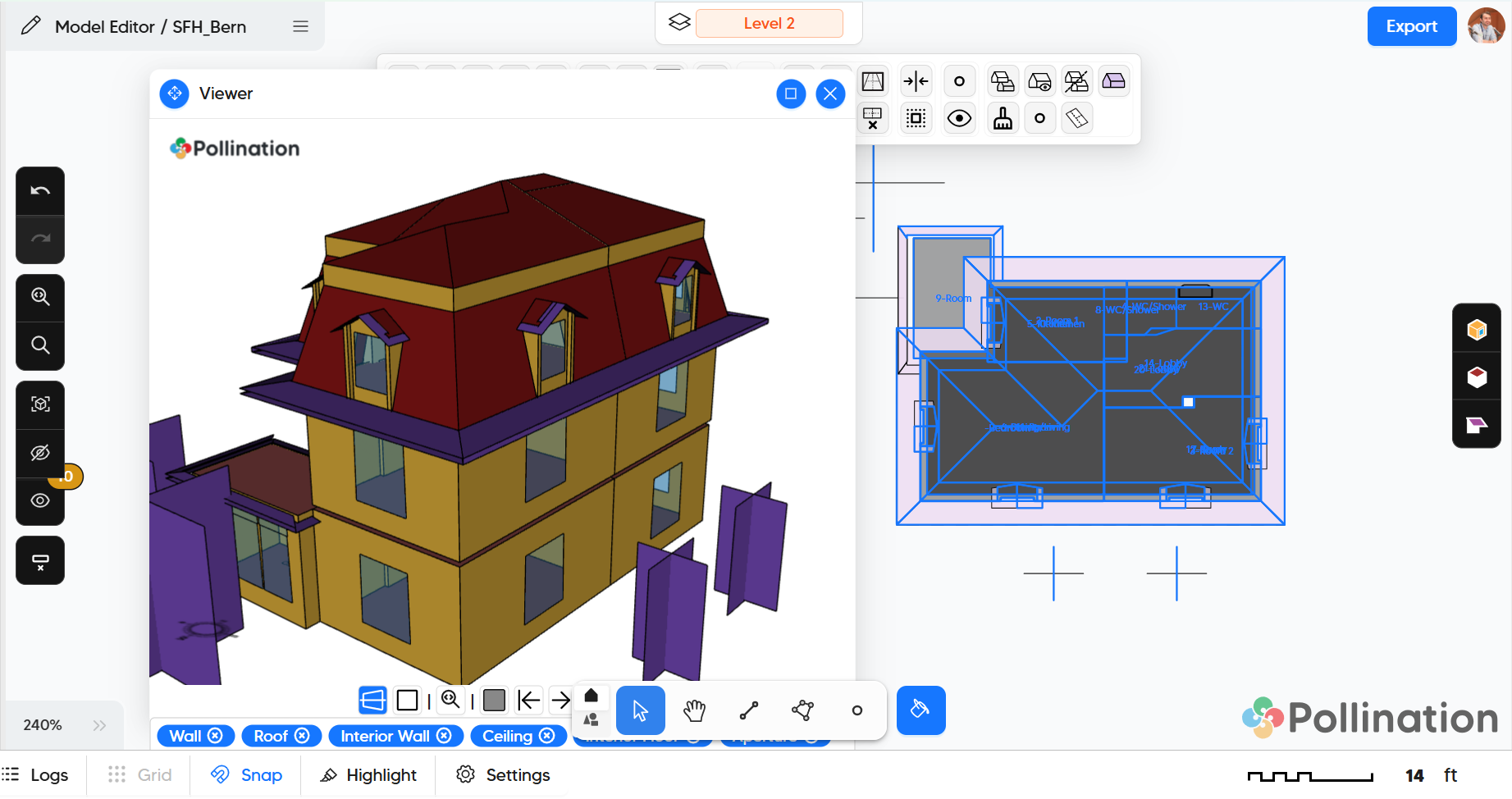 The model looks good, and you’re almost there with the roof. You need to do more clean-up to make sure the edges align, but you need to do that in the Model Editor. If you can export your model as a Pollination snapshot and share the PoMF with me, I can show you how to clean it up.