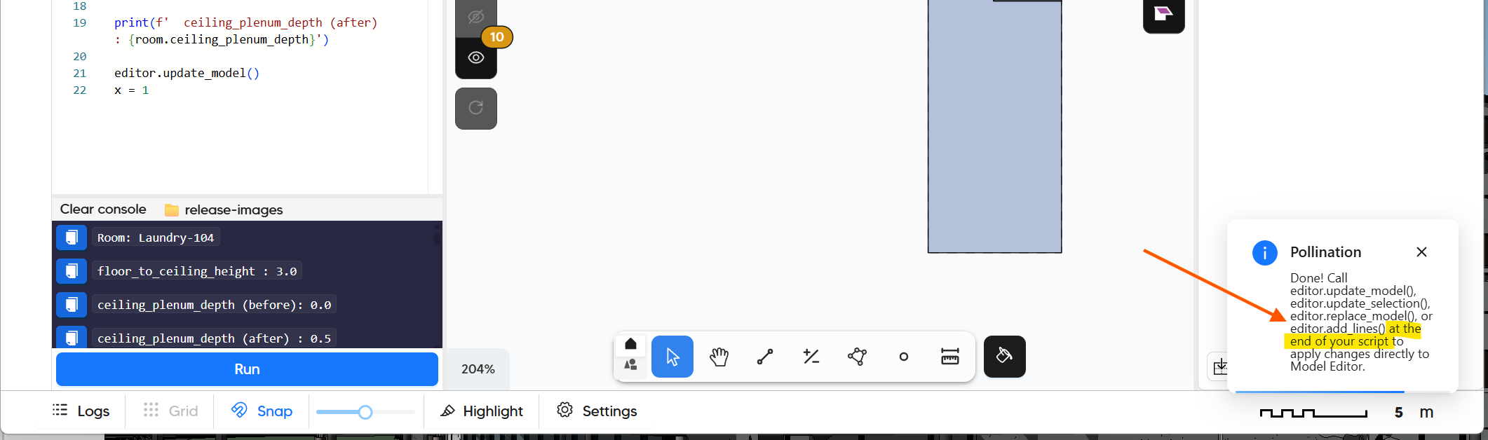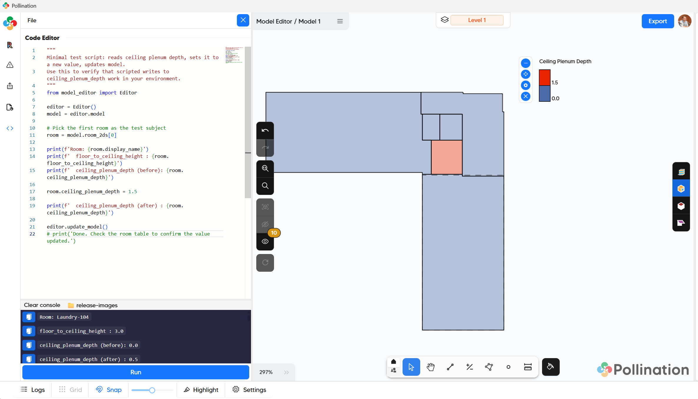 I’m trying to write a script that updates the “Ceiling plenum depth (ft)” attribute of rooms in my model from a CSV file in the mapped directory. However, the script runs but the “write” operation to room.ceiling_plenum_depth isn’t updating my model based on reviewing the room tabular data after the script finishes.
