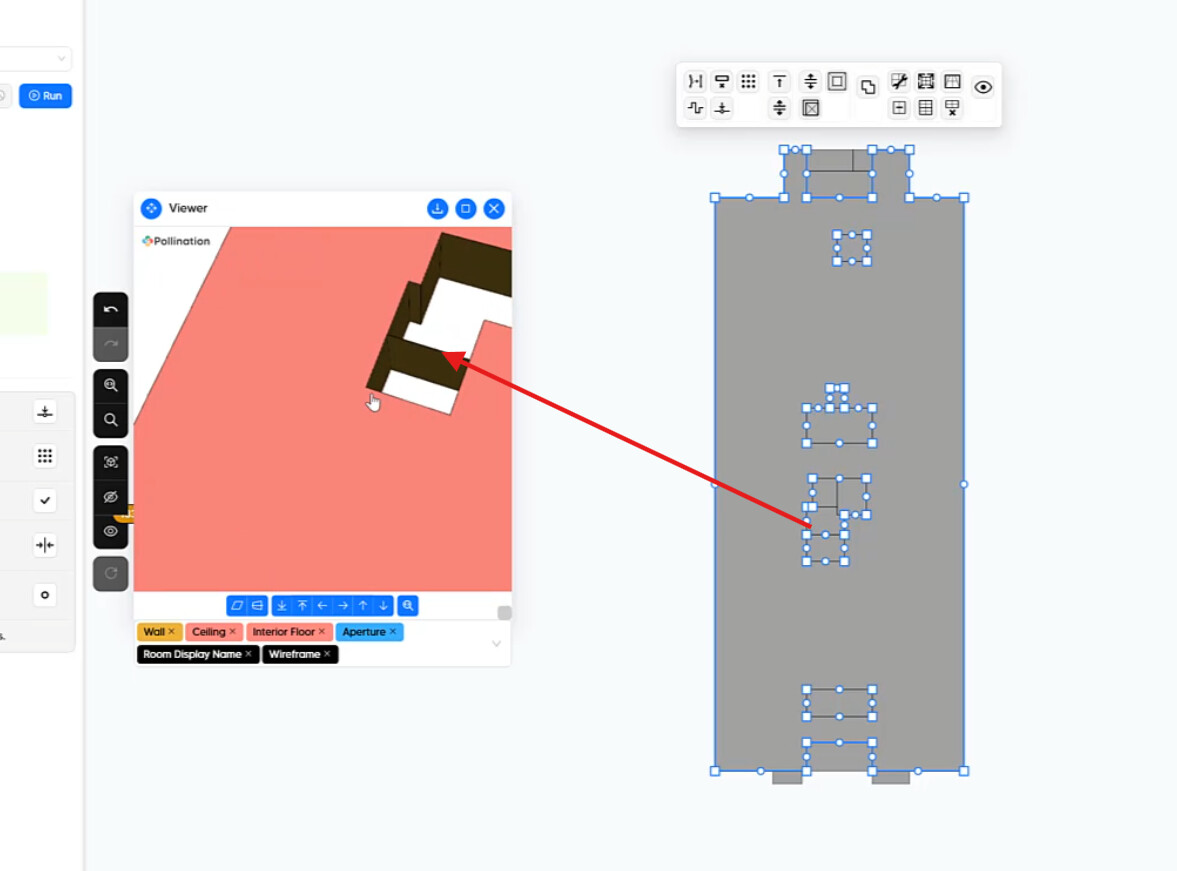 The problem was caused because of the two rooms that had line-like segments. One on the 2nd floor and another one on the 5th.