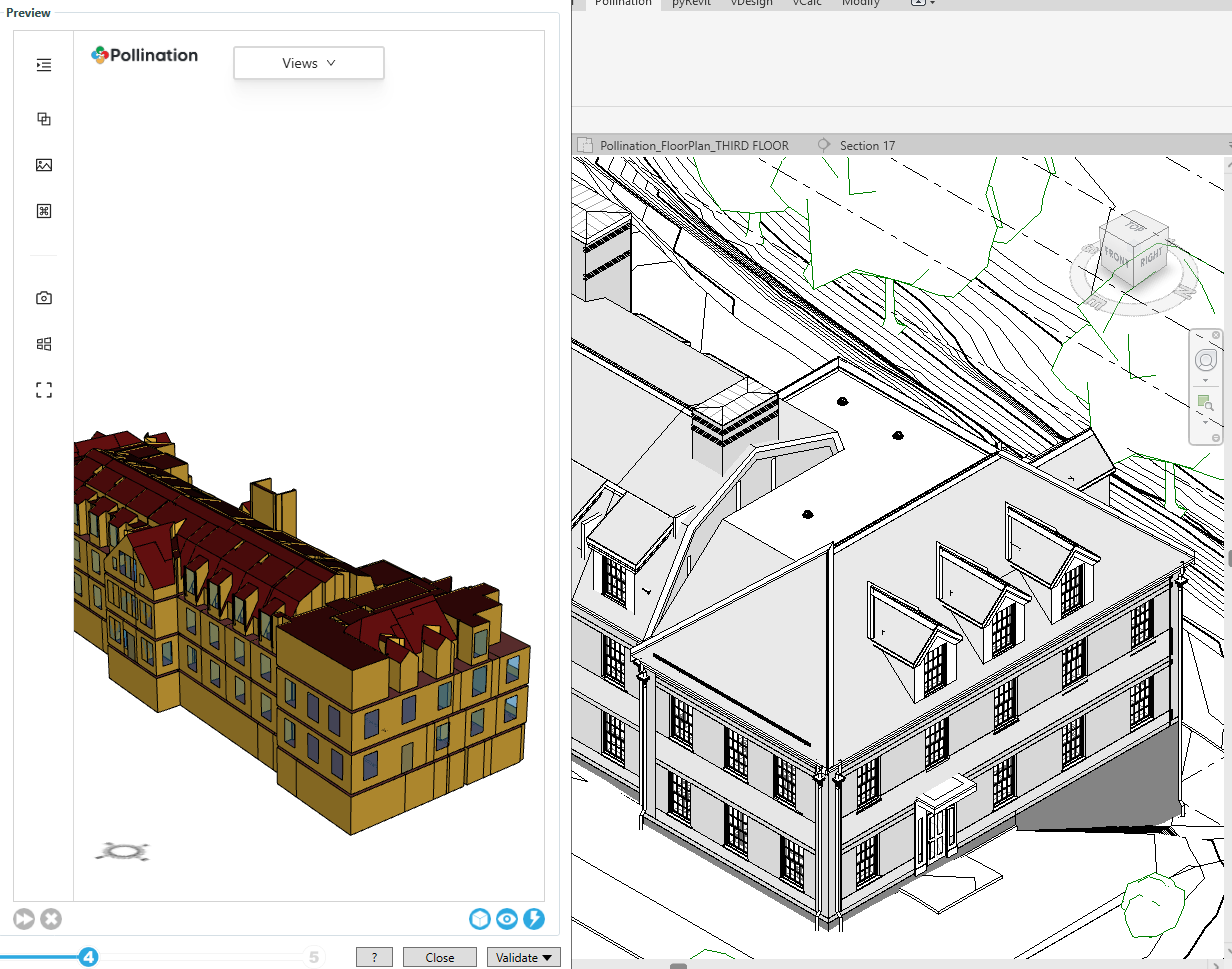 Hi, I am trying to bring this Revit model into pollination and it is showing incorrectly. The right image is the Revit model and left in the pollinator preview.