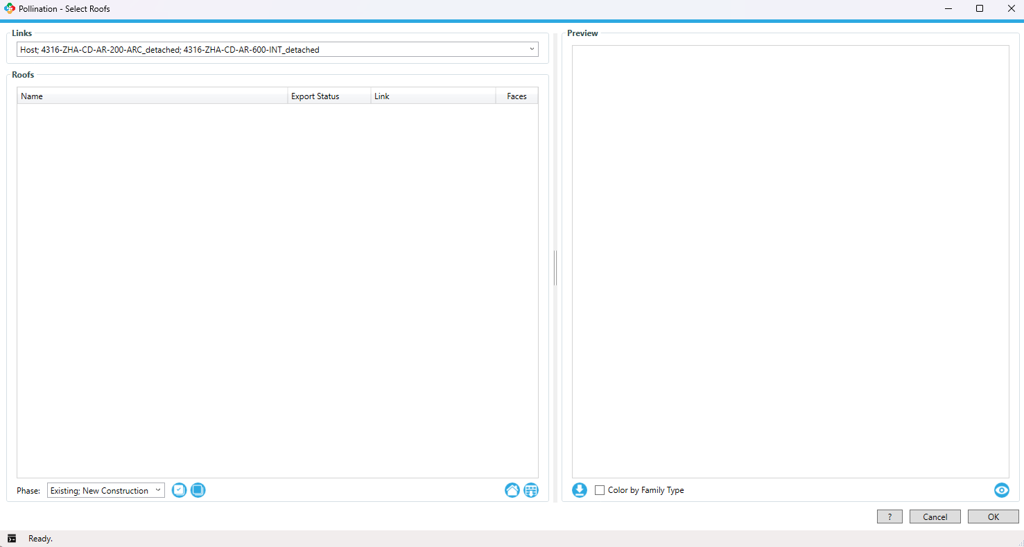 Also, the Pollination - ‘Select Windows/Doors’ panel seems odd, the dropdown menus for Links, Phase and Filter By Level are all empty.