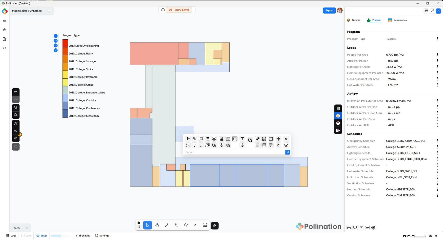 Now that the geometry translation is mostly addressed, we’ve started looking into the next big hurdle: data automation. We’ve started mapping Revit Space types directly into Pollination program types, a feature many of you have been asking for.