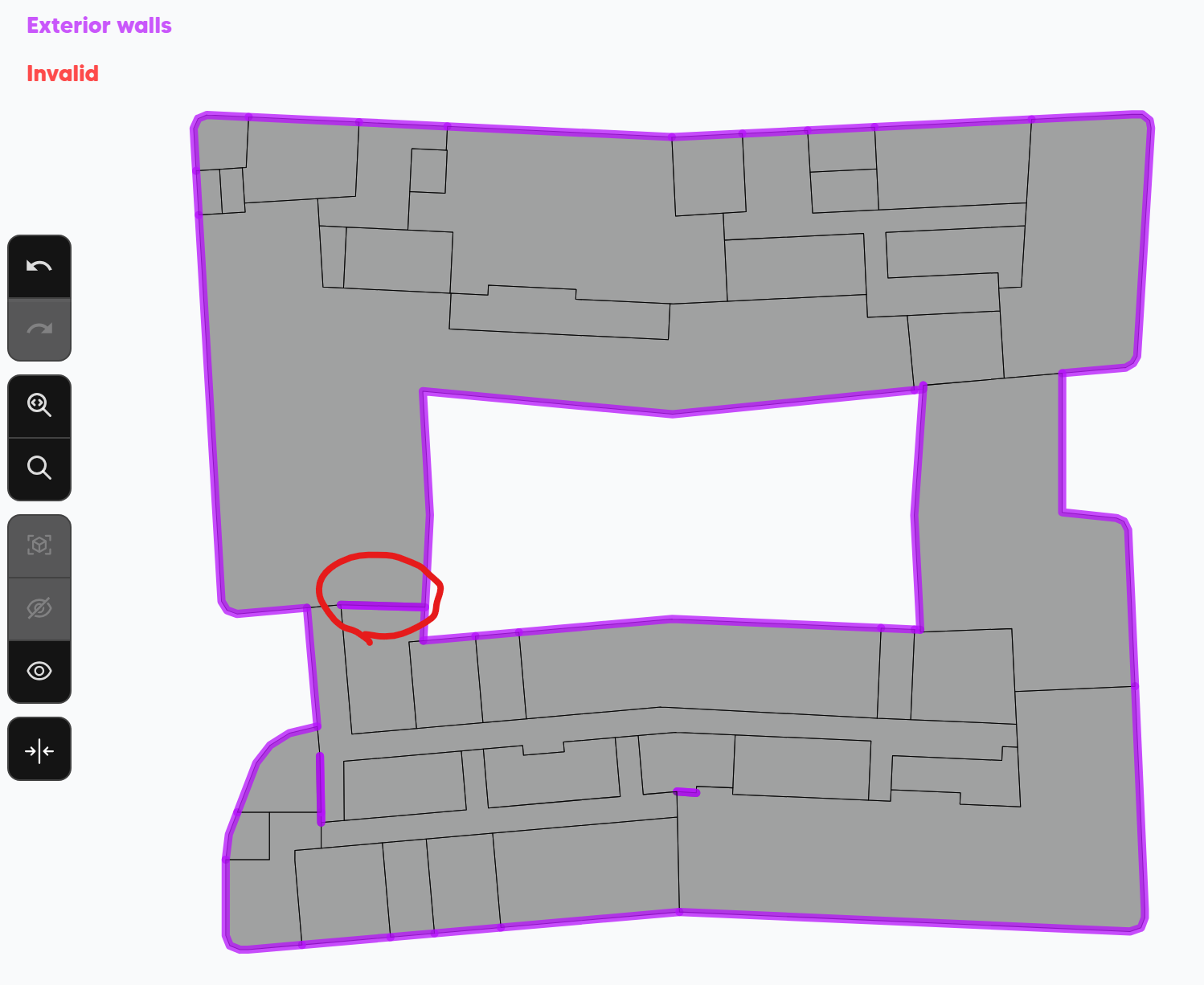 Here is some additional recommended clean up to remove all the small adjacency warnings that shows up in IESVE Model Report. They are not technically invalid, and the simulation should run fine with them but something that you could improve in your model.